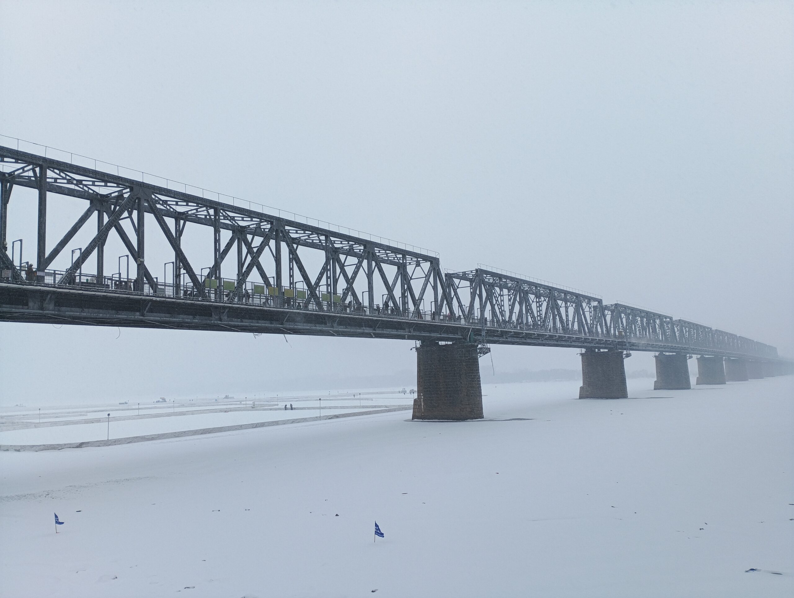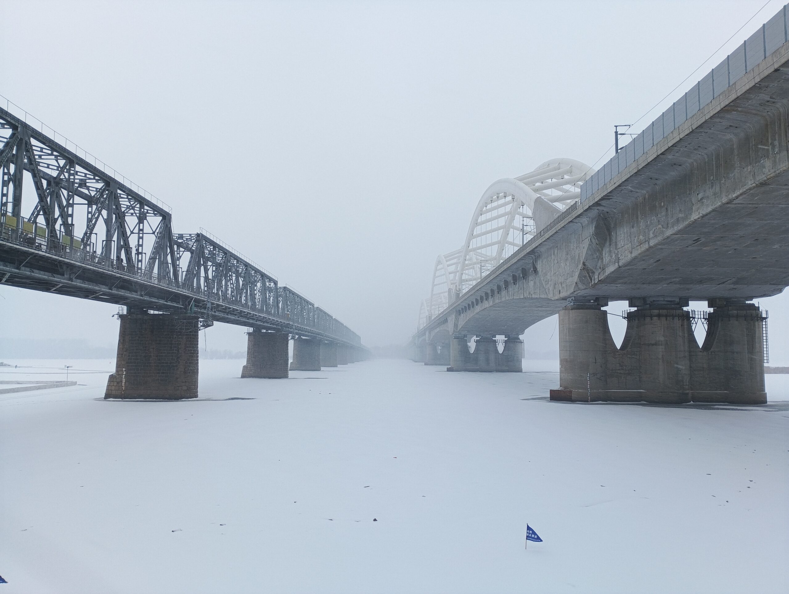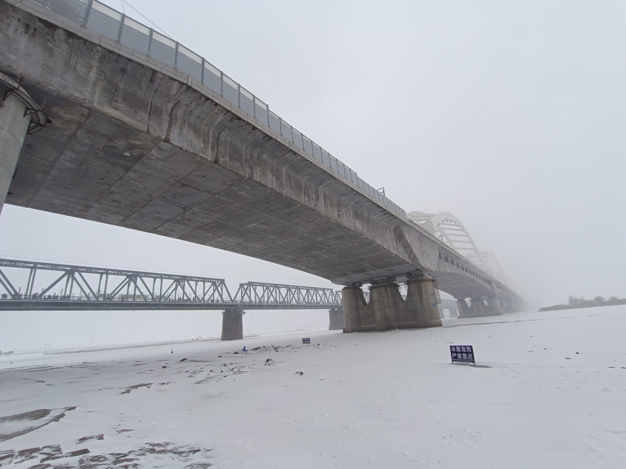 去年12月23日的时候,我来哈尔滨后,下了一场大雪,据说也是哈尔滨这个冬天下得最大的一场雪。风雪交加,我去逛了逛跨越松花江的百年滨洲桥,这座松花江上的首座跨江铁路桥,见证了哈尔滨的百年变迁,如今成了游客必打卡的景点。