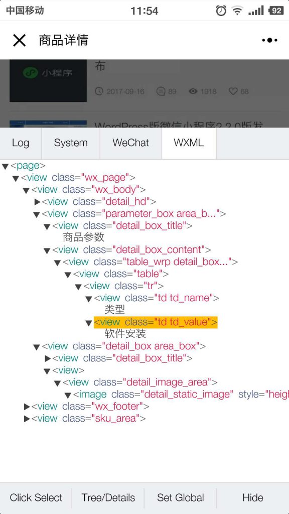 在调试信息你会发现微信小店的appid和各个页面page的路径。